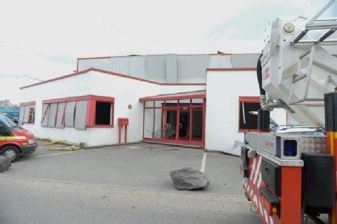 Über das genaue Ausmaß der Schäden gibt es noch keine Informationen, es sind aber etliche Scheiben im Umfeld zerborsten, Dächer wurden stellenweise abgedeckt. Inzwischen ist der Kampfmittelräumdienst vor Ort und hat die Unglückstelle weiträumig abgesperrt.