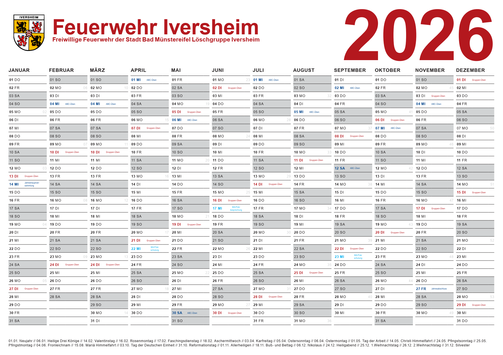 Termine >>HIER<< der Terminplan für das Jahr 2025.Gruppen- und Zug-Übungen starten um 19:30 Uhr, die Jugendfeuerwehr um 16:45 Uhr.